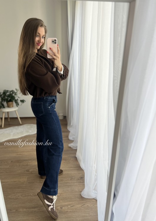 A hosszított fazon karcsúsít, a rojtok játékosságot visznek a megjelenésbe, az elöl található zsebek pedig praktikus részletként szolgálnak.