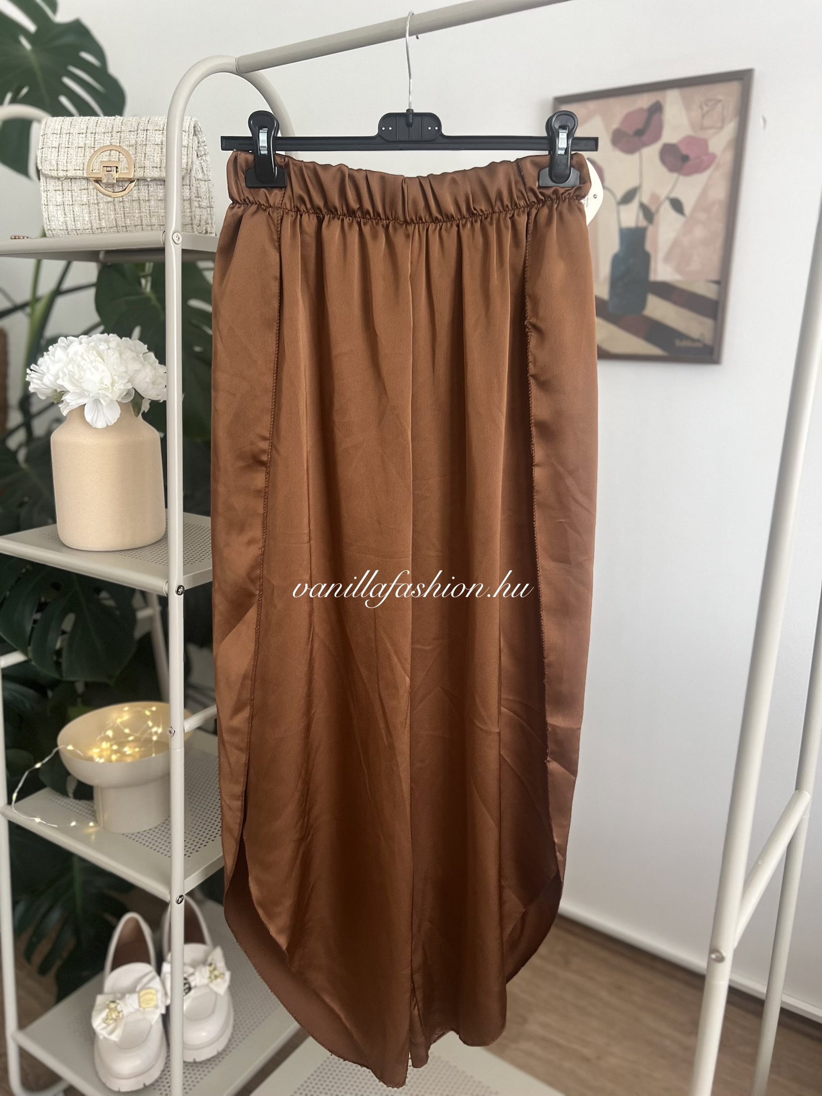 Fleur de Soleil szatén anyagú, gumis derekú nadrág.