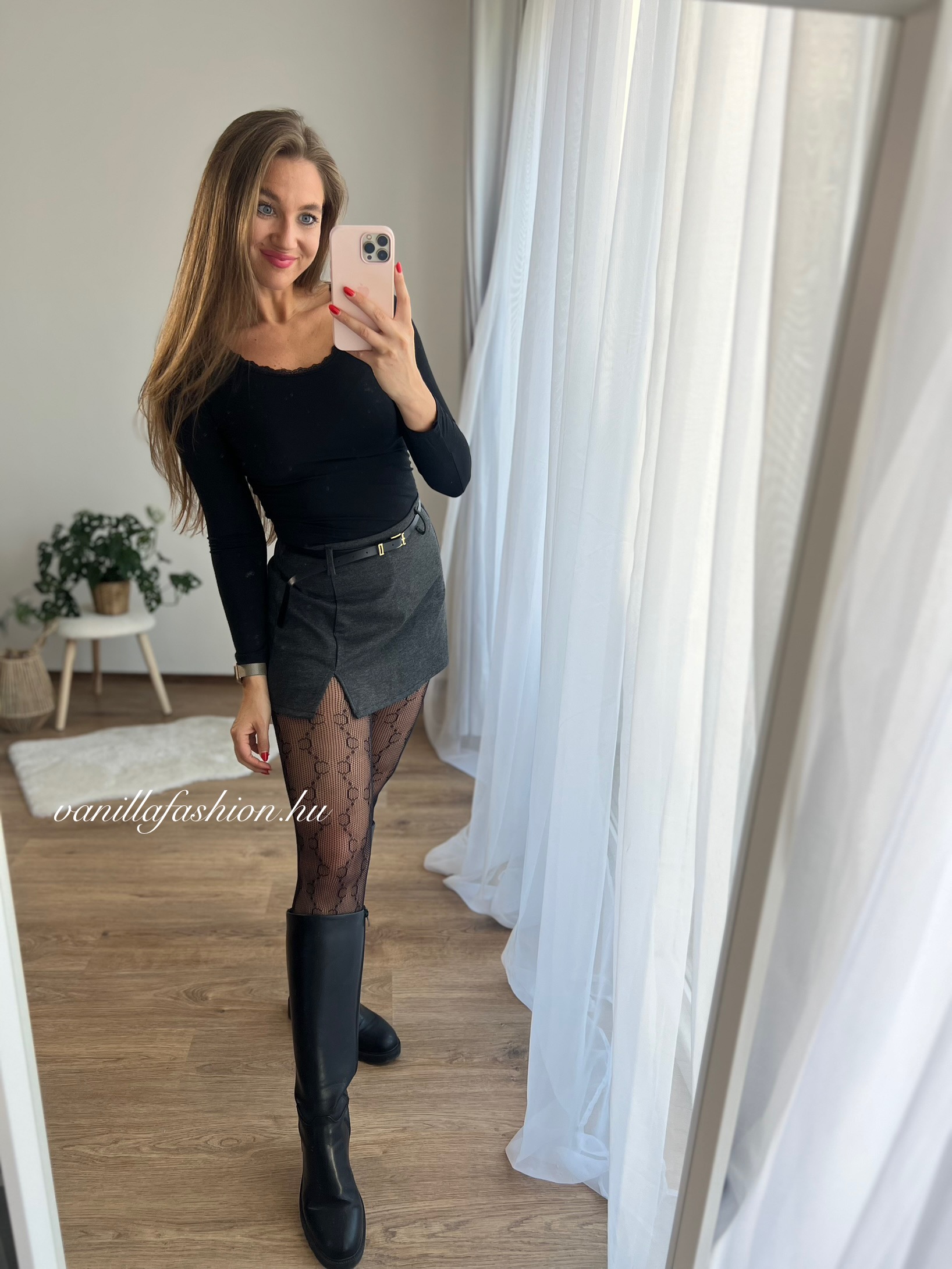 A rövid szoknya fazon modern szabással és oldalslicc-cel kombinálva ad trendi hatást, miközben a nadrágrész praktikus viseletet biztosít. Könnyen párosítható elegáns felsőkkel, csizmával vagy magassarkúval.