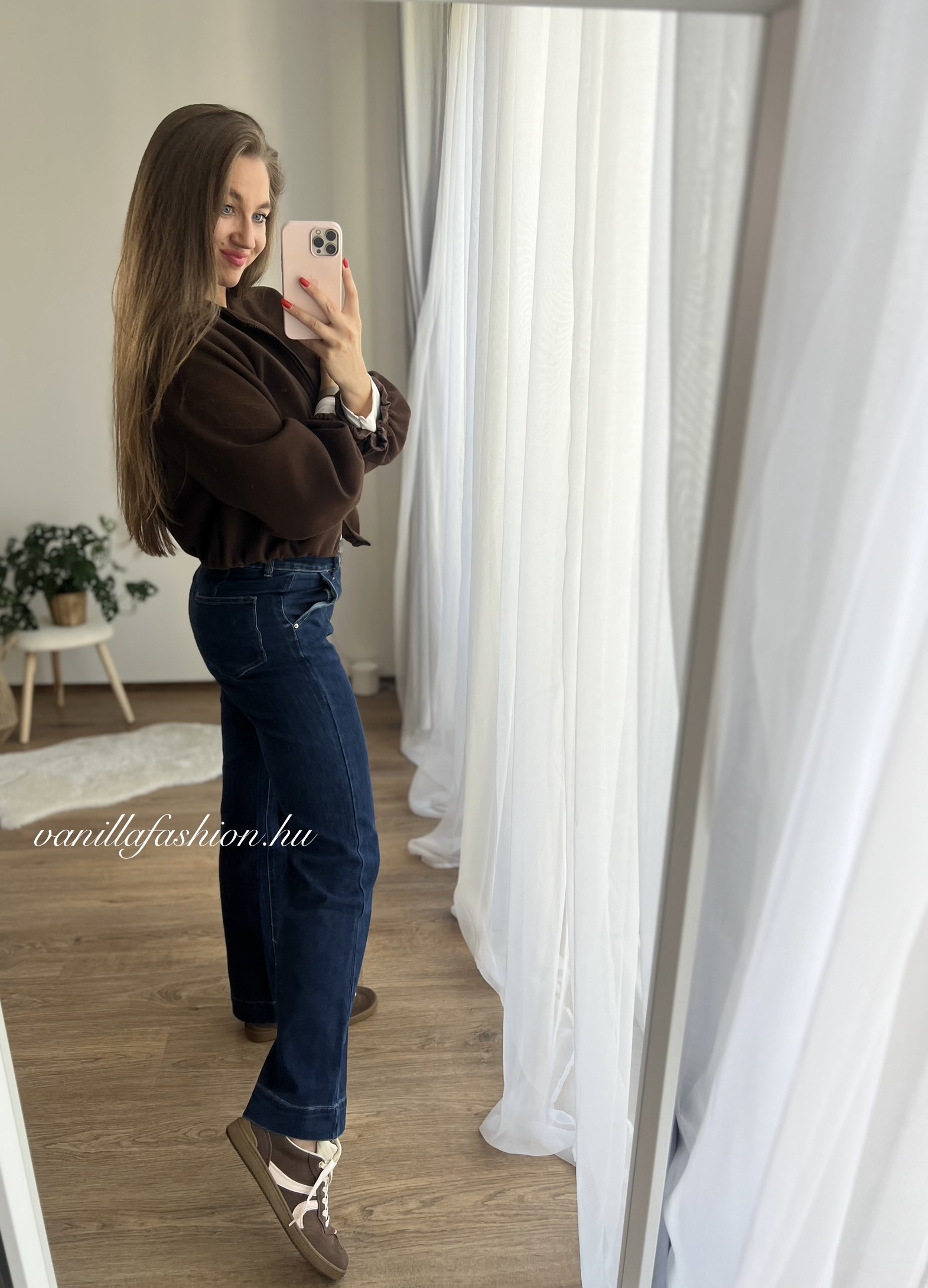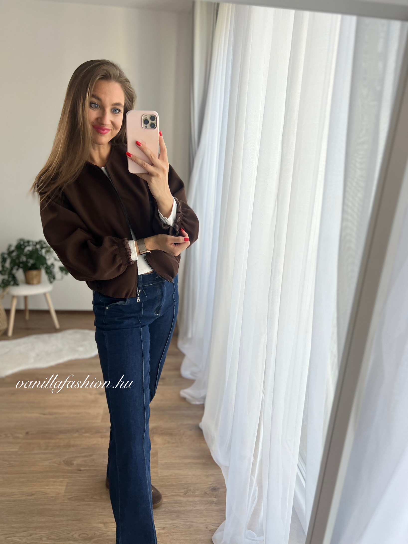 Laza fazonja és gumírozott ujja kellemesen sportos hatást ad, miközben a mély csokibarna árnyalat eleganciát sugároz.