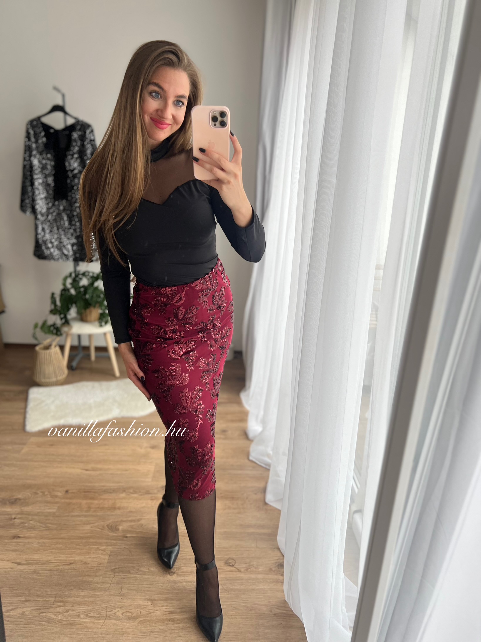 Rouge Élégance flitterekkel díszített szoknya.