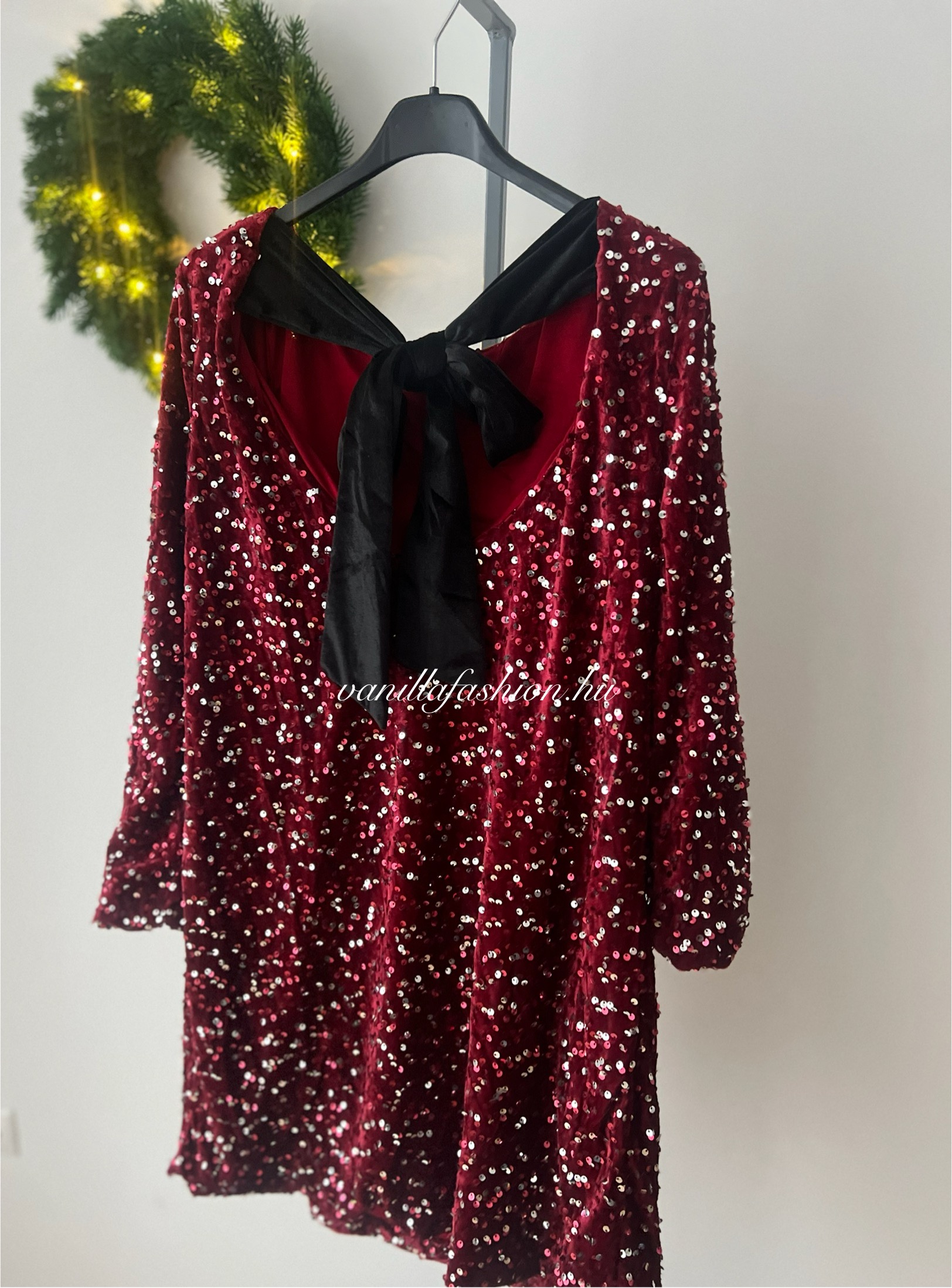 Benáta laza, flitteres ruha szatén masnival díszítve.