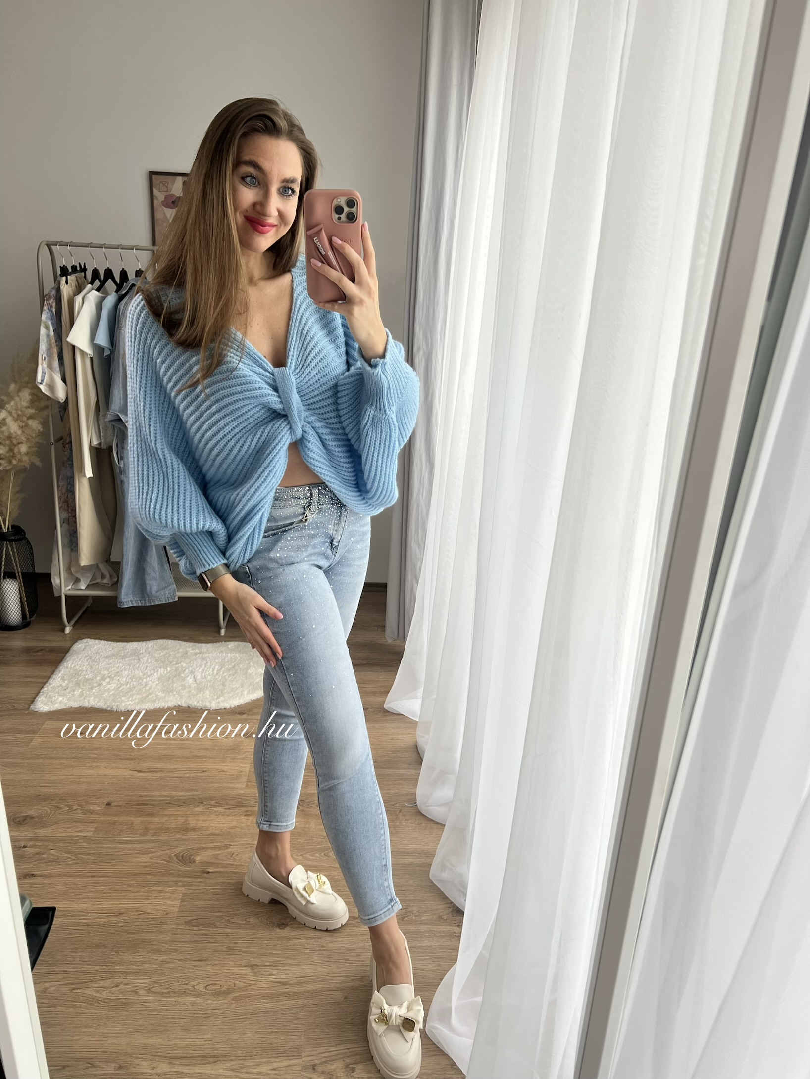 A pulóver egyméretes darab, S-L méretig ajánlott.