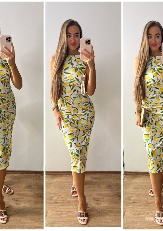 Cedro bordázott anyagú, mintás, testhezálló ruha.