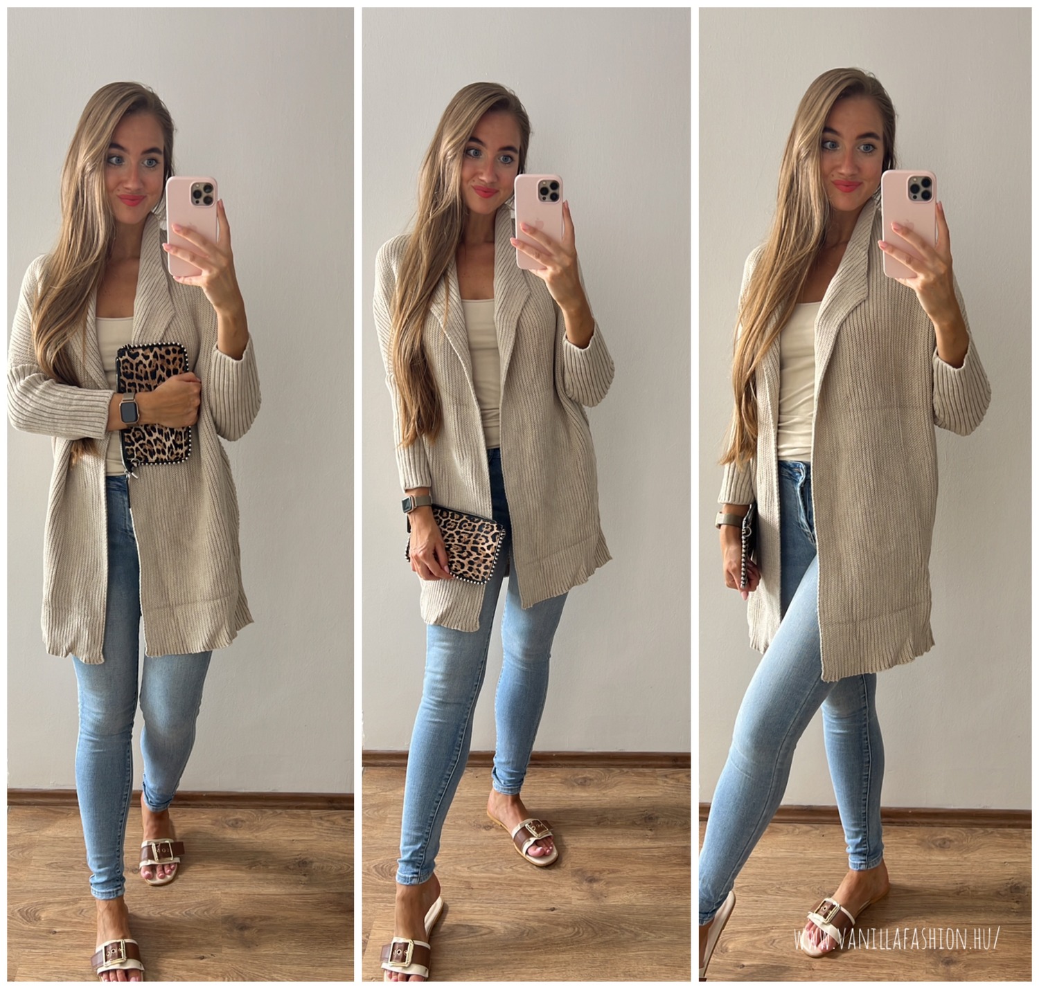 A kardigán egyméretes darab Xs-L méretig ajánlott.