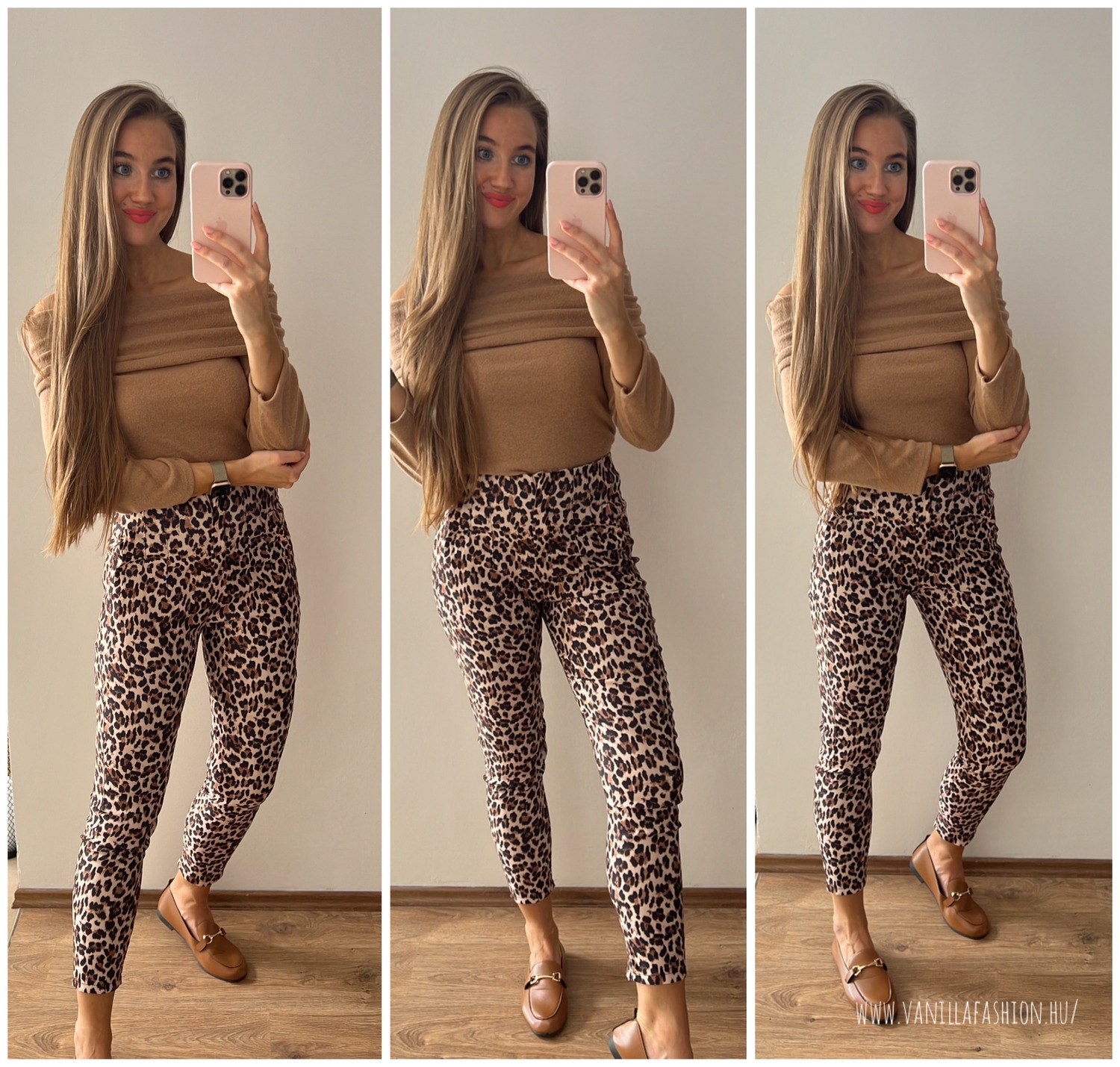 Leo ocelot mintás, magas derekú, elegáns fazonú nadrág.