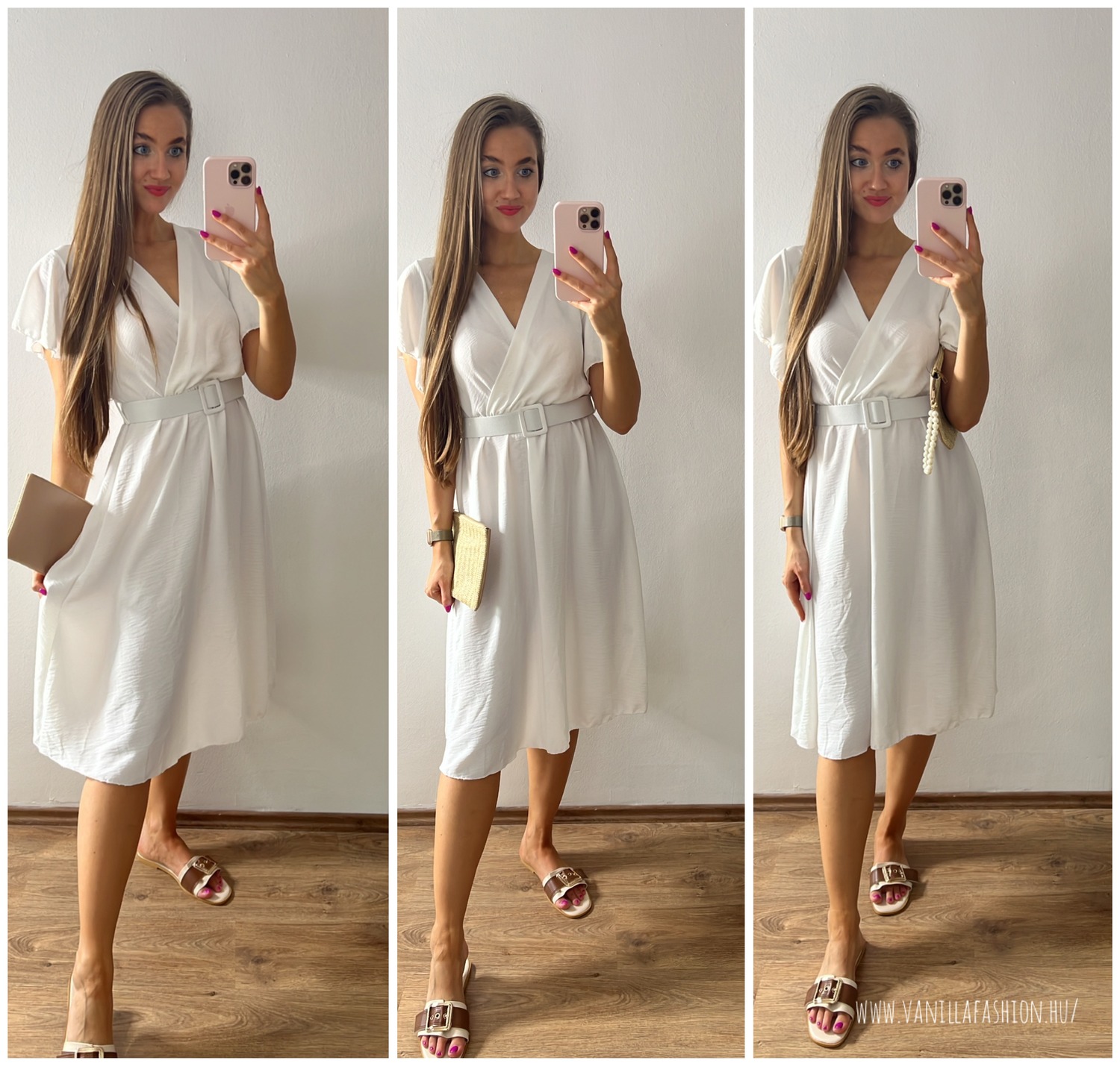 Átlapolt felsőrészű, kellemes anyagú ruha.
