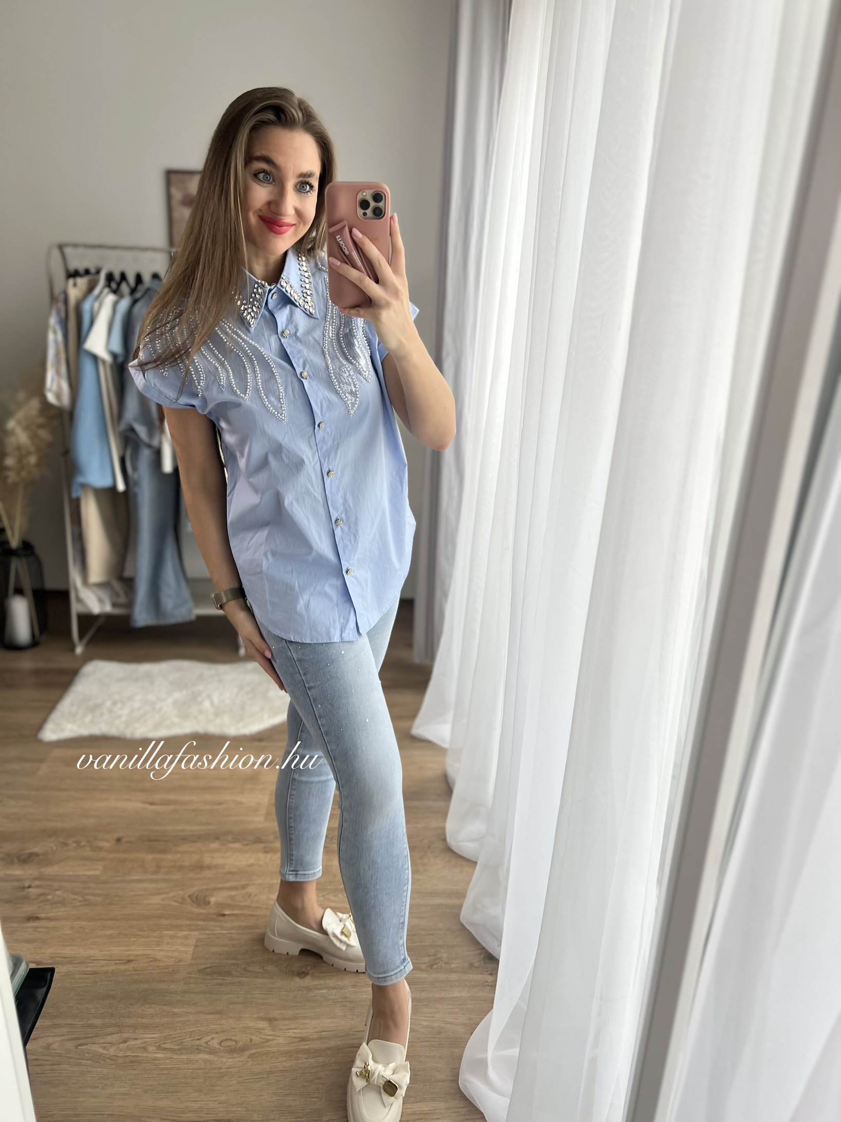 Netti díszes, rövid ujjú blúz.