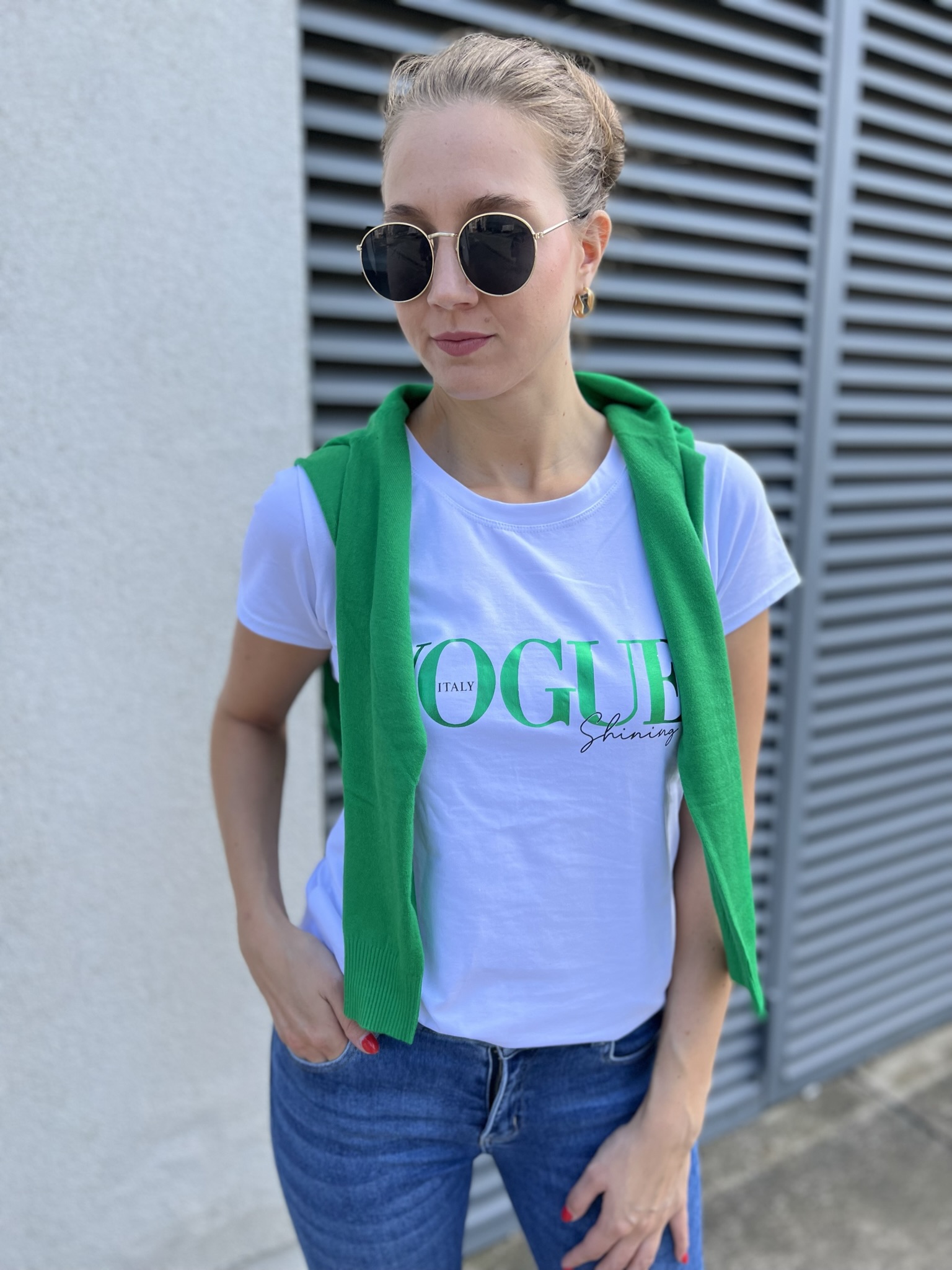 Rövid ujjú mintás felső, egyméretes darab Xs-M méretig ajánlott.